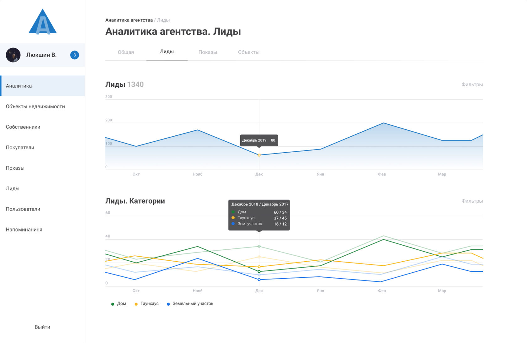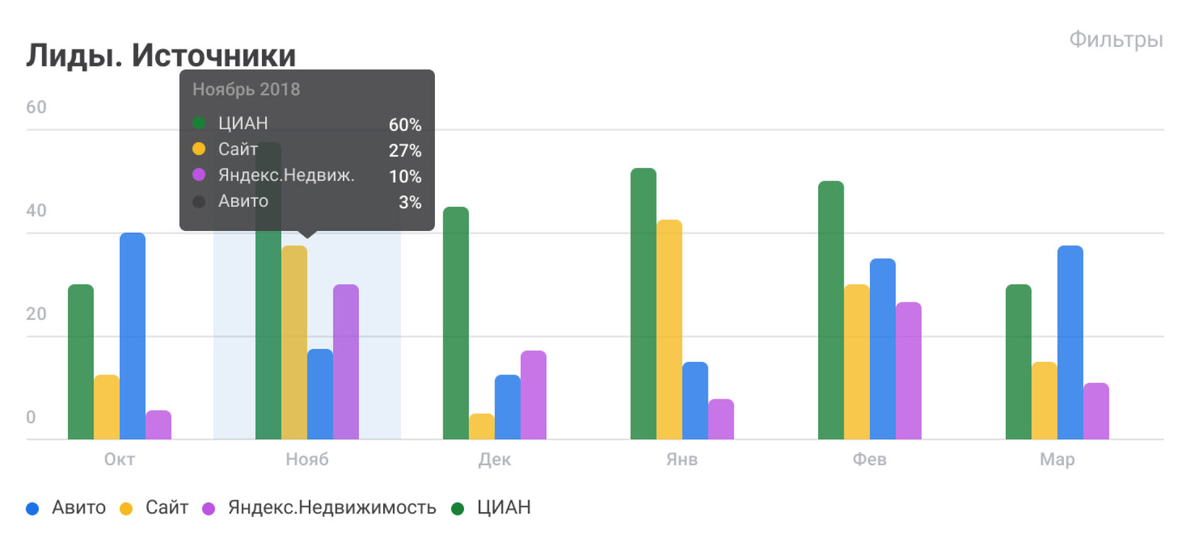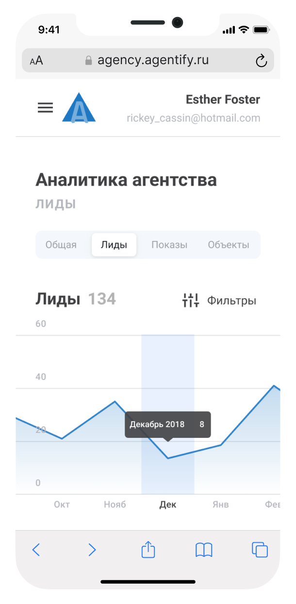 В любой момент и с любого устройства просматривайте аналитику агентства недвижимости от общих показателей к частным.