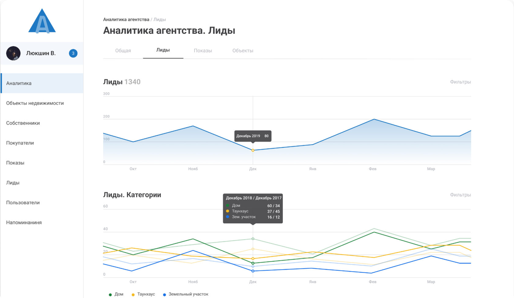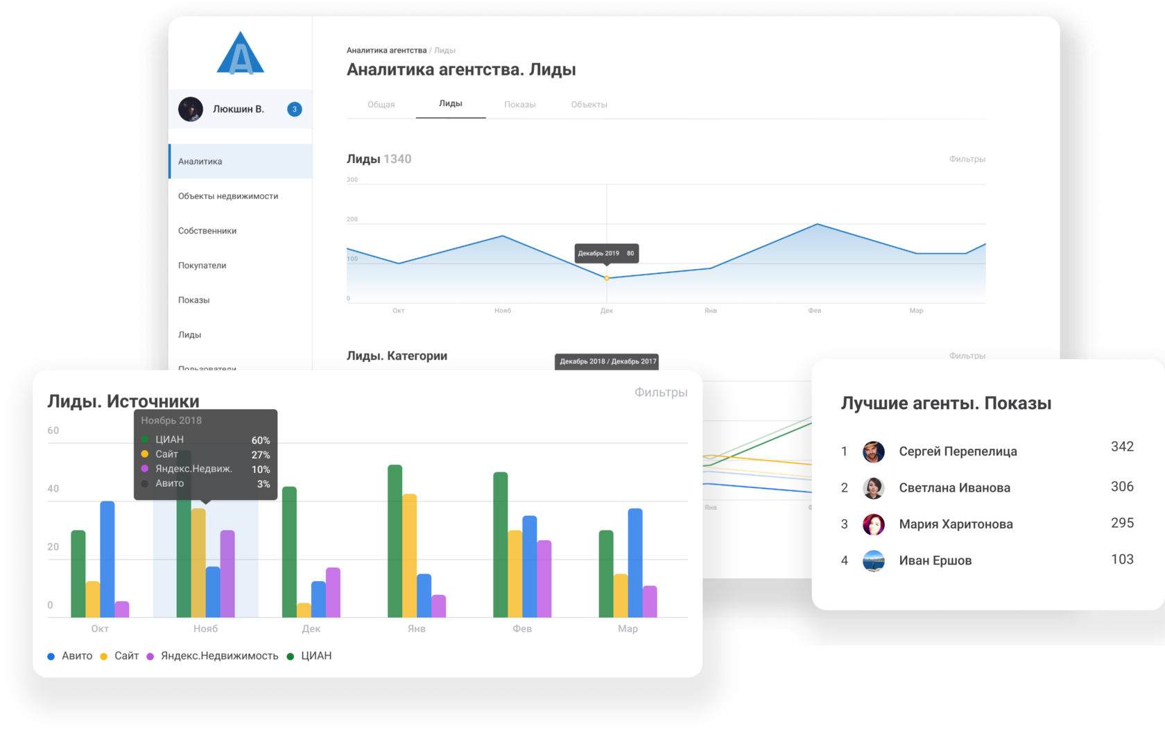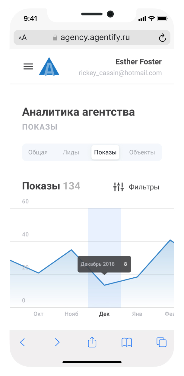 В любой момент и с любого устройства просматривайте аналитику агентства недвижимости от общих показателей к частным.