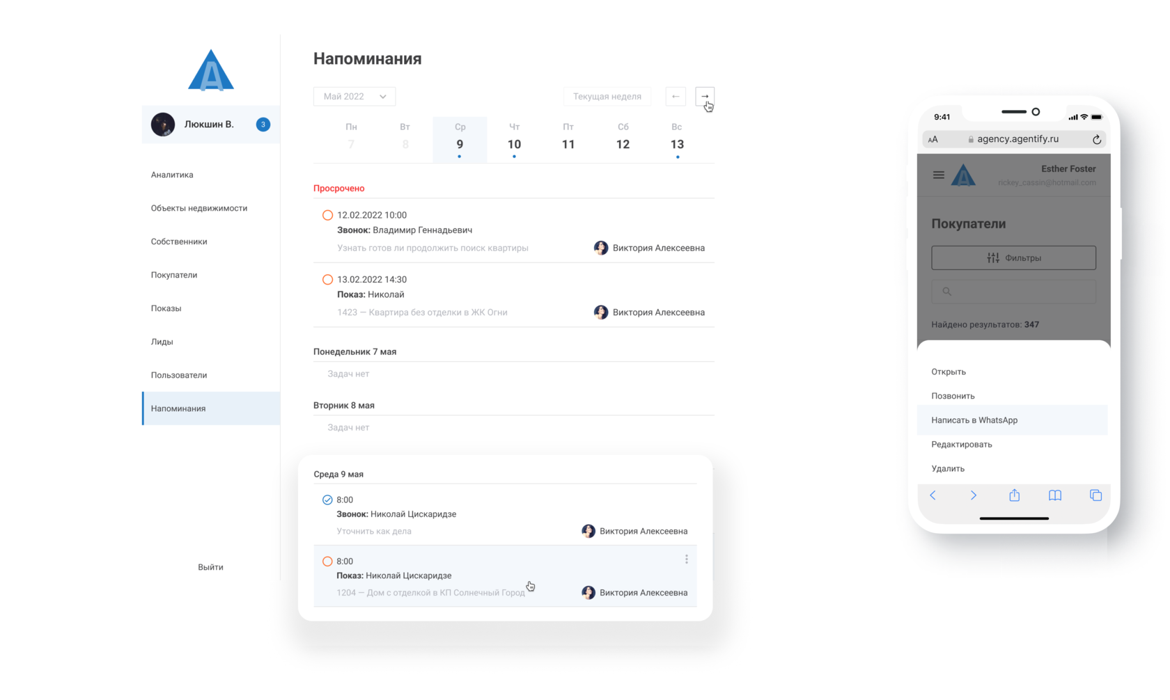 ⚪ Управляйте выгрузкой объектов ⚪ Оповещайте покупателей о предстоящих показах ⚪ Добавляйте напоминания о необходимых звонках